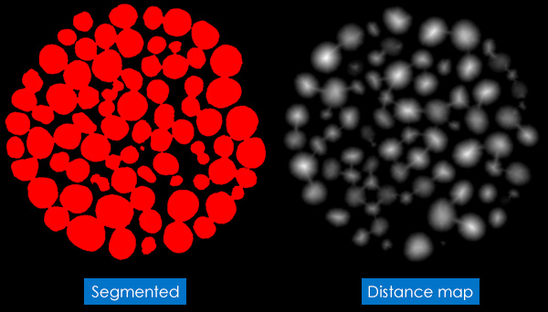 The distance map is then used as an input parameter to separate the binary input dataset.