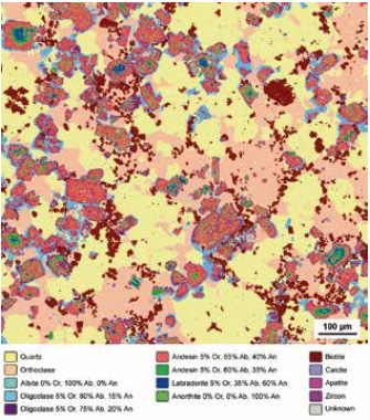 In this example, the M4 TORNADOAMICS was used to study the zonation of plagioclase feldspar in granite.